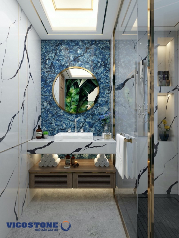 Do đó, một xu thế phổ biến hiện nay là sử dụng những loại đá nhân tạo gốc thạch anh như đá Vicostone, vừa tái hiện được vẻ đẹp của gỗ, vừa có khả năng chống ngấm vượt trội, an toàn với sức khỏe người dùng.