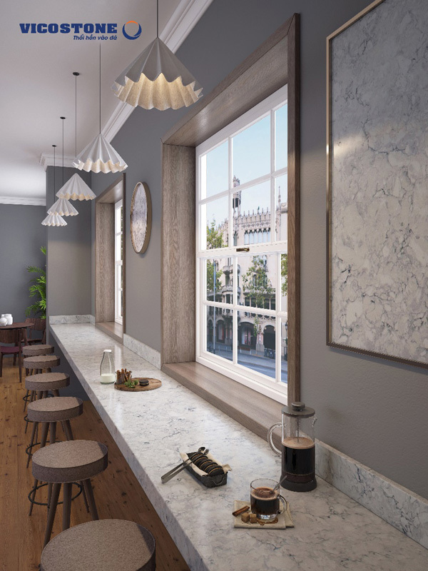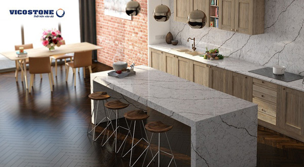 Theo các kiến trúc sư, với khí hậu nhiệt đới nóng ẩm như Việt Nam, mặt bàn bếp sử dụng đá gốc thạch anh là sự lựa chọn hoàn hảo vừa nâng tầm căn bếp, tạo điểm nhấn cho không gian vừa an toàn khi sử dụng. Với công nghệ tiên tiến hàng đầu thế giới Breton (Ý) kết hợp bí quyết riêng độc đáo cho khả năng chống xước, chống ăn mòn, ngừa vi khuẩn và có độ bền vượt trội hơn so với đá tự nhiên, đá nhân tạo với 90% cốt liệu thạch anh Vicostone được nhiều chuyên gia nội thất khuyên dùng.