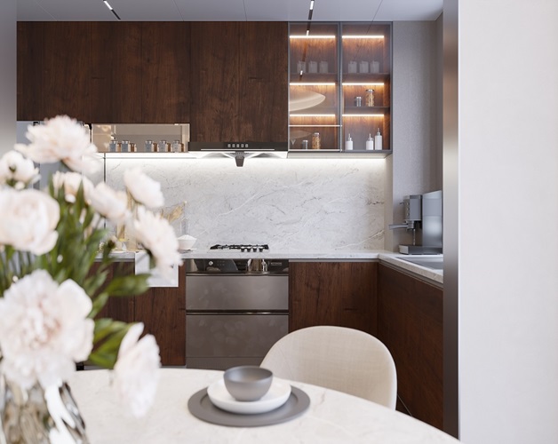Những đường vân mảnh mai màu trắng trên nền đá hiệu ứng cẩm thạch điểm xuyết xanh nhạt độc đáo của VICOSTONE® Verdelia BQ7704 gợi nhắc đến biển xanh như ngọc dịu mát, an lành trong ánh nắng lấp lánh buổi bình minh.