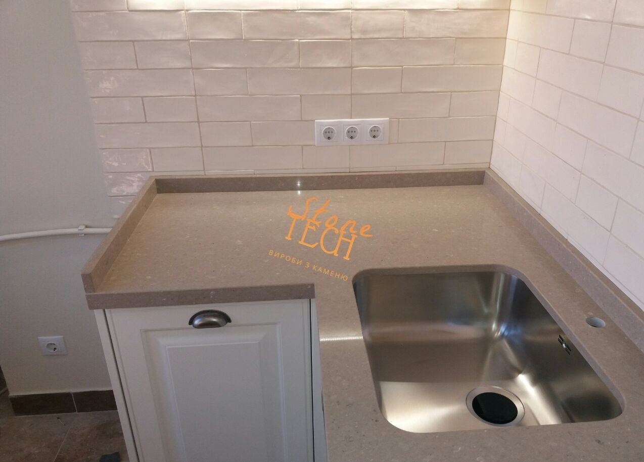 Dòng sản phẩm với thiết kế các dải hạt lớn tạo hiệu ứng trầm tích theo thời gian, tổng thể toàn tấm mang màu trung tính, dễ dàng phối hợp với các loại tủ bếp.