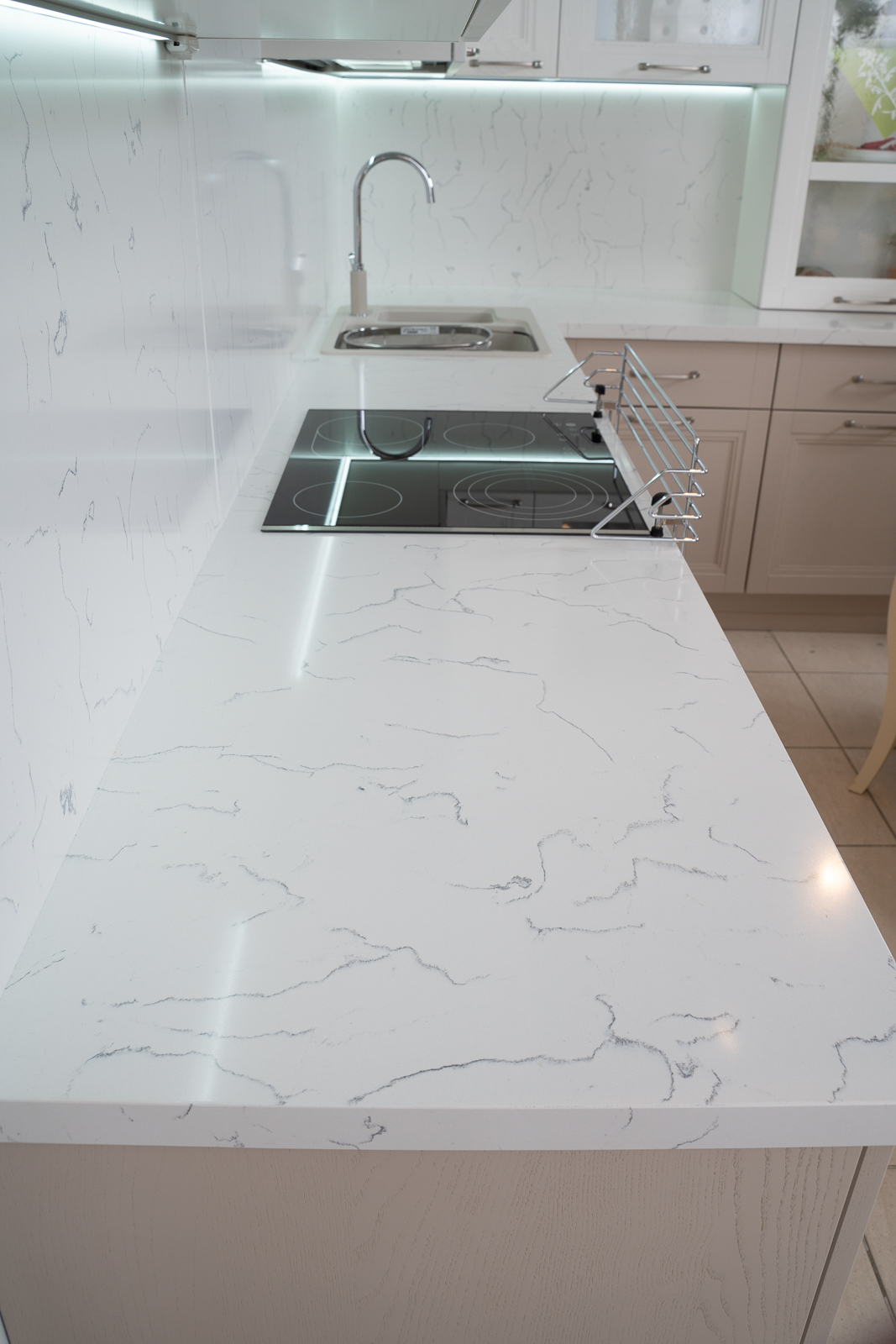 Sản phẩm đá Vicostone Bianco Venato là sự là một sự sáng tạo độc đáo từ dòng đá cẩm thạch nổi tiếng cùng tên của Ý, các kỹ sư Vicostone đã tinh tế chỉ giữ lại những đường vân mỏng nhẹ như những sợi chỉ thay vì những cây vân lớn, để chúng xuất hiện trên nền màu cẩm thạch trắng sáng hơn so với dòng đá tự nhiên vốn có.