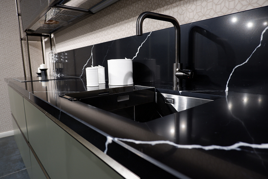 Sản phẩm đá Vicostone Nero Marquina nổi bật với những đường vân rạn, như những tia sét đánh mạnh mẽ trải dài toàn tấm. Các đường vân này càng trở nên nổi bật hơn với màu trắng tương phản hoàn toàn bề mặt mô gần như đen một cách tuyệt đối đầy huyền bí.