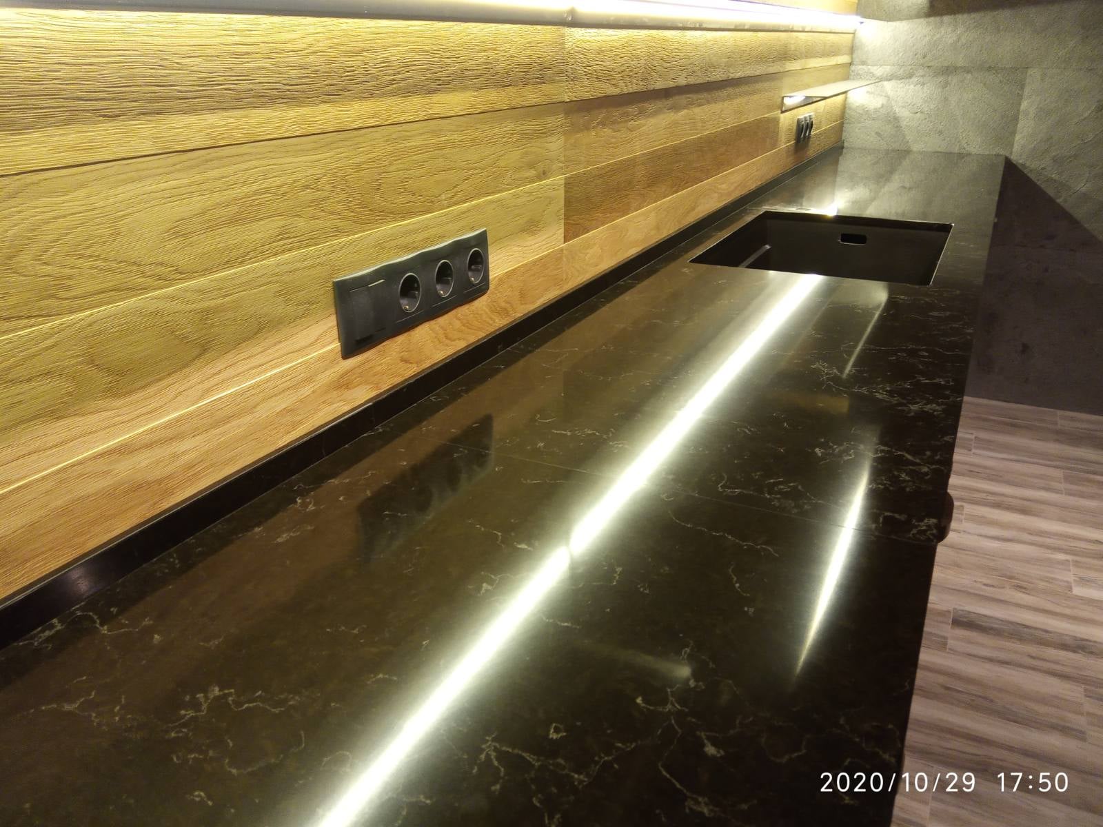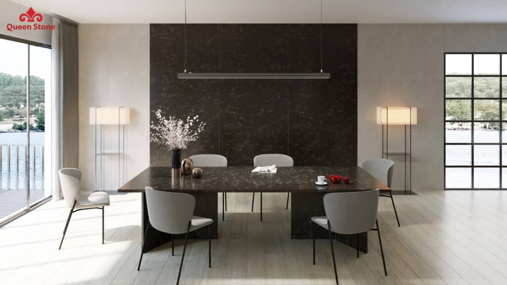 Sản phẩm đá Vicostone Java Noir được thiết kế bởi những đường vân trắng nhẹ, chạy tự do tạo nên sự tương phản rõ rệt trên nền tối với hai màu đen và nâu đậm.